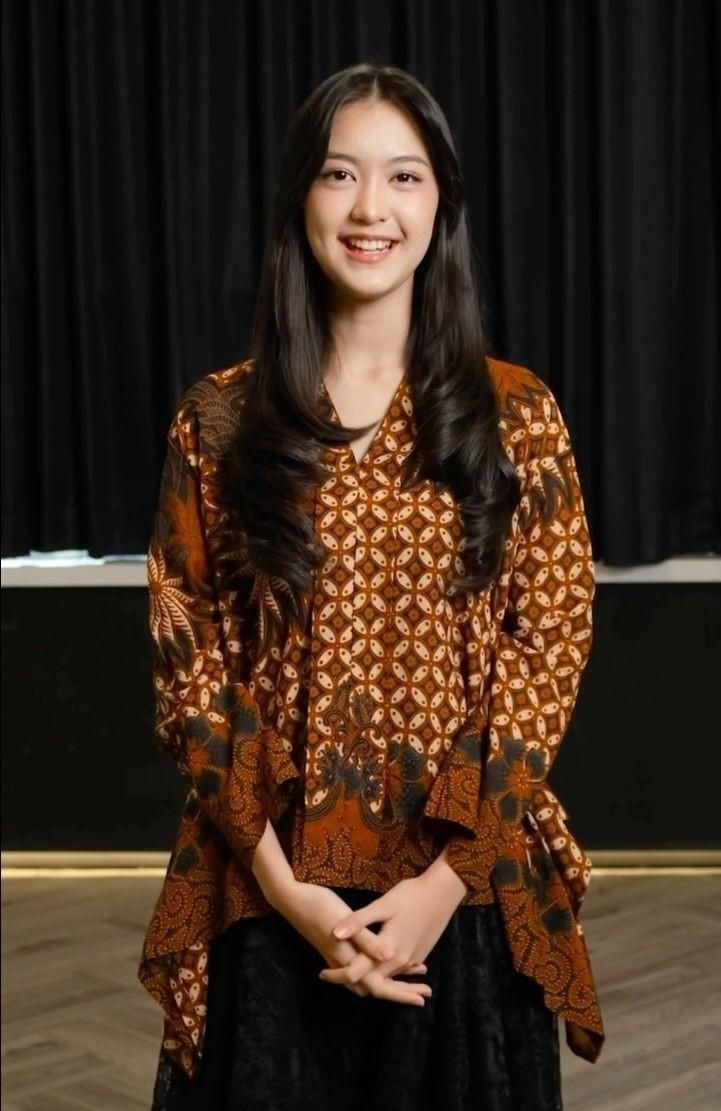 Detail layer yang berlapis pada baju tersebut membuat look jadi tampak lebih feminin dan anggun. Jangan lupa tempatkan motif batik yang pas di bagian ujungnya supaya tampak rapi dan teratur.