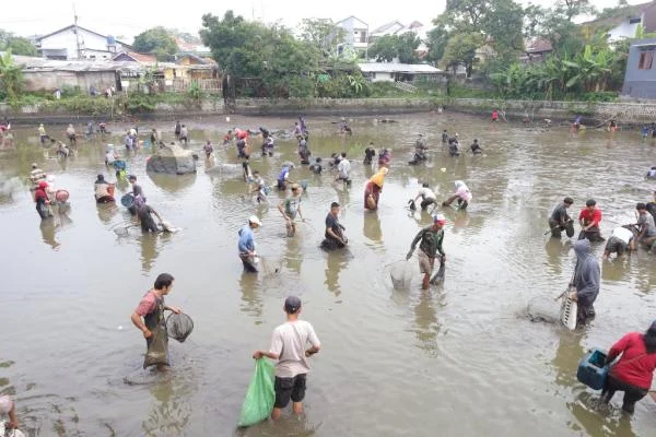 Tradisi Ngobeng Lauk di Situ Cimalongpong, Bupati Kuningan Turun Langsung Tangkap Ikan Bersama Warga