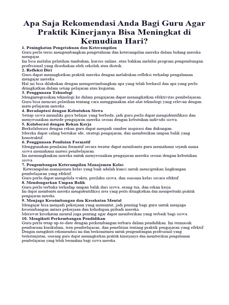 Apa Saja Rekomendasi Anda Bagi Guru Agar Praktik Kinerjanya Bisa Meningkat Di Kemudian Hari?