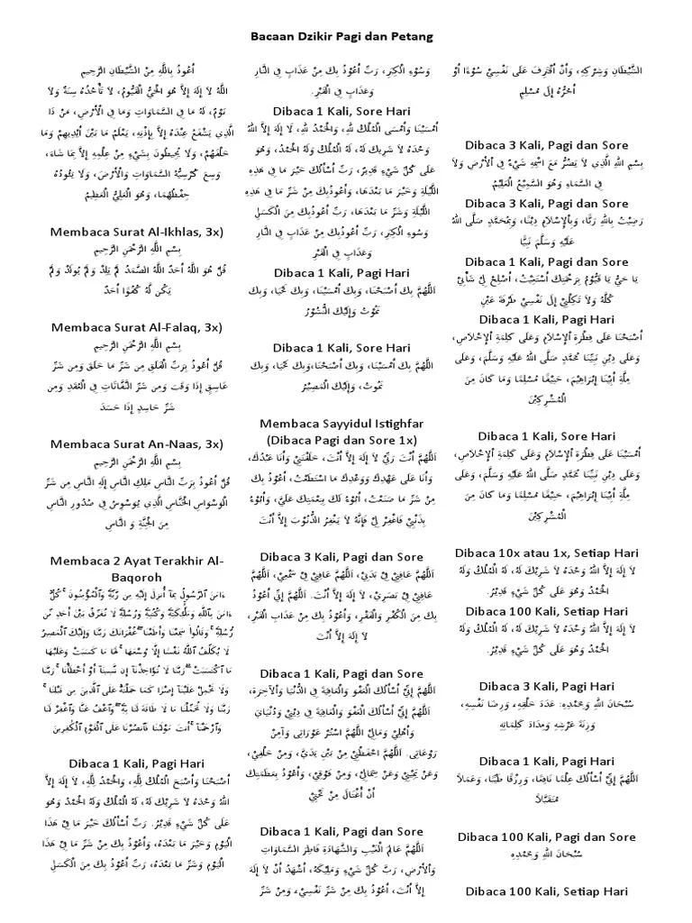 Bacaan Dzikir Pagi Petang Bahasa Arab/ Latin dan Terjemahannya,Amalkan Tiap Hari