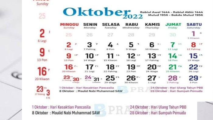 Tanggal 24 Oktober Weton Apa? Catat Sisa Hari Penting Nasional di Kalender Oktober 2025