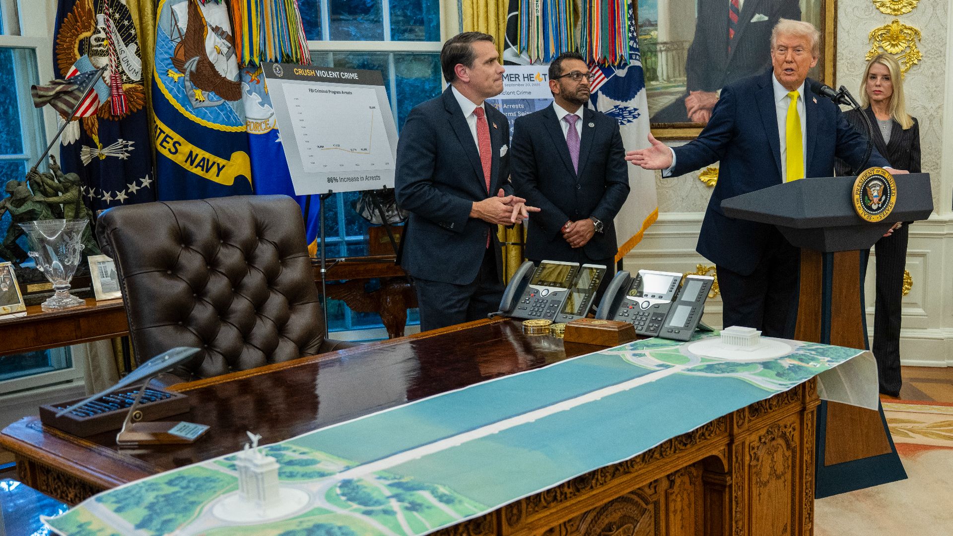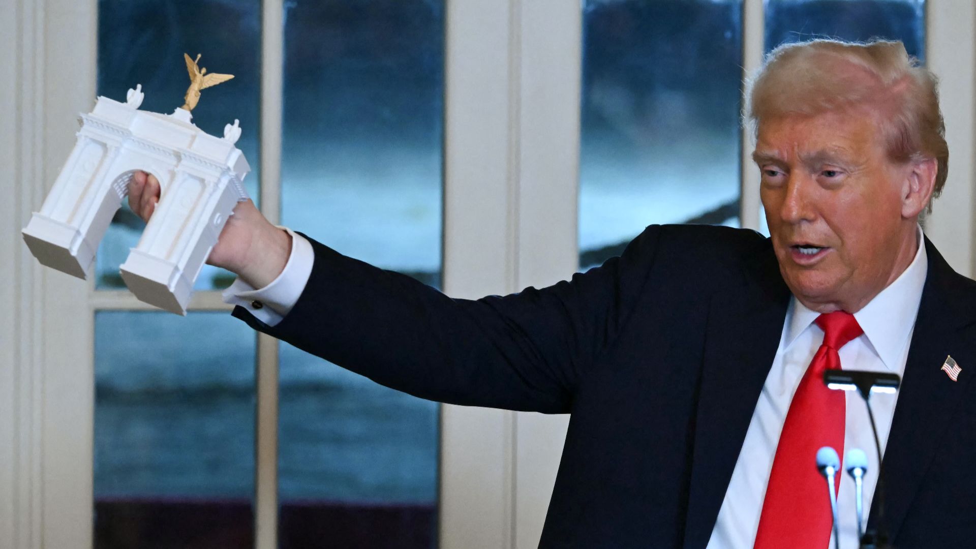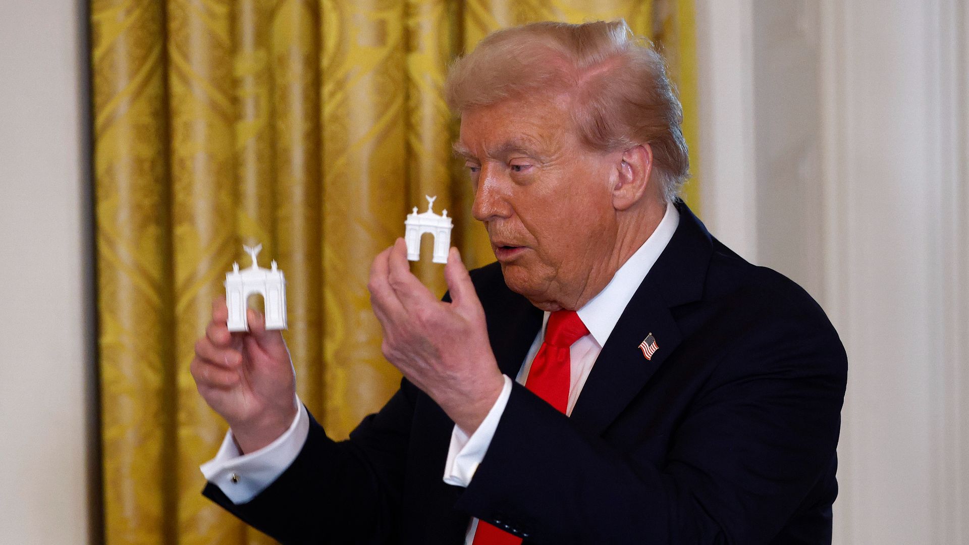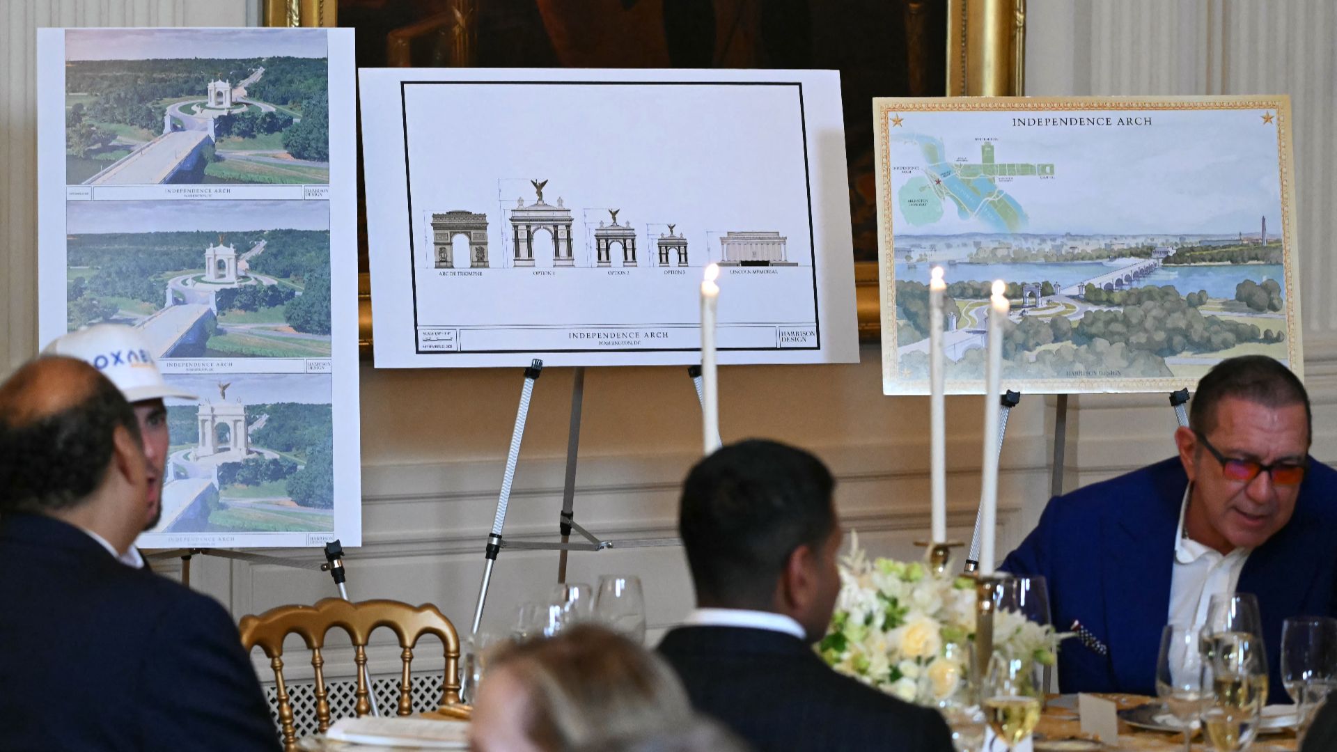 Während eines kürzlich stattgefundenen Fundraising-Dinners im East Room des Weißen Hauses, an dem etwa 130 Gäste teilnahmen, darunter Vertreter von Amazon, Apple, der Google-Muttergesellschaft Alphabet und Meta Platforms sowie der Ölmagnat Harold Hamm, der Blackstone-CEO Steve Schwarzman und die Kryptowährungsunternehmer Tyler und Cameron Winklevoss, präsentierte Donald Trump eine Reihe von maßstabsgetreuen Modellen eines monumentalen Bogens – in verschiedenen Größen – während er zu den Anwesenden sprach.