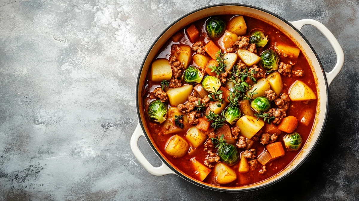 Bauerntopf mit Rosenkohl und Hackfleisch: ein warmer Eintopf für kalte Tage