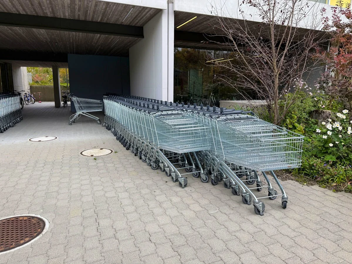 In der Aargauer Telli-Siedlung reihen sich die Einkaufswagen aneinander: Seit Coop neue Wägeli hat und die alten nicht mehr abholt, stehen sie in der ...