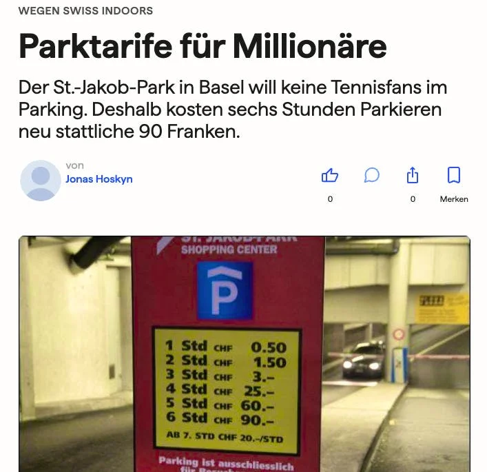 90 Franken für sechs Stunden: Parkplatz-Wucher bei Swiss Indoors?