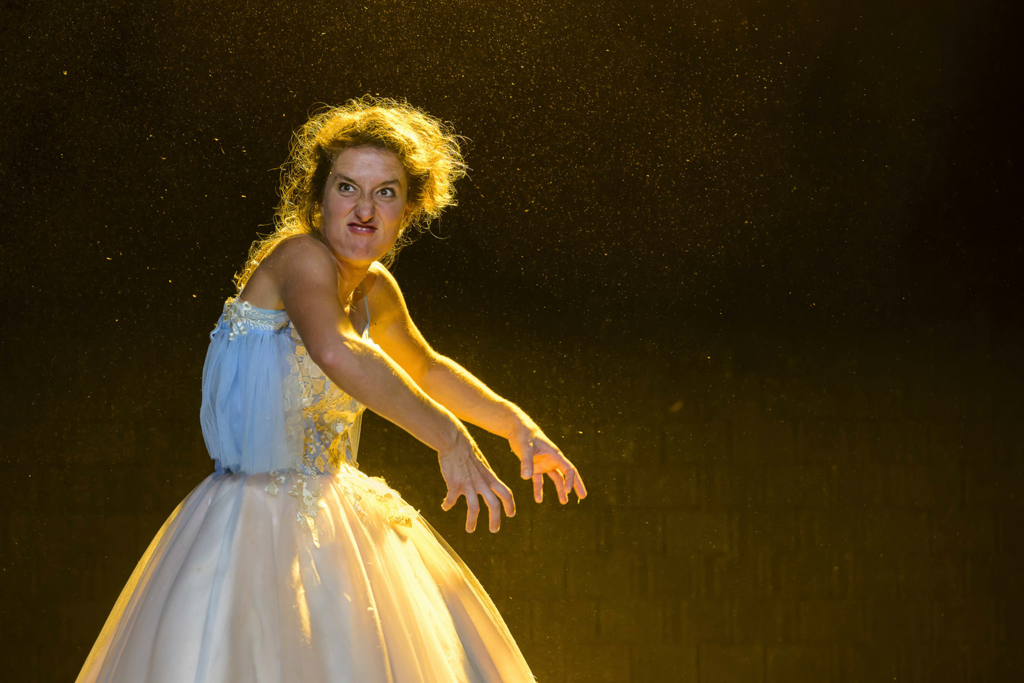 In einem «Fury Room» kann im schalldichten Raum für 30 Franken herumgeschrien oder Porzellan zerschlagen werden, auch wenn sich ausserhalb des Raumes so gar nichts ändert. Fanny Krähenbühl zeigt auf der Bühne, wie das in ihrem eigenen «Fury Room» heilsam genutzt werden kann.