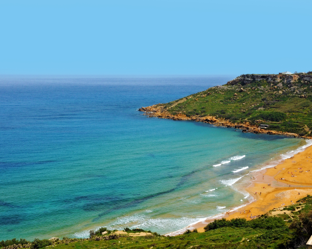 Gozo ist rund 14 Kilometer lang und 7 Kilometer breit. Trotz ihrer geringen Größe ist die Landschaft abwechslungsreich. Zwischen sanften Hügeln, Feldern und Kalksteinmauern liegen Buchten und Klippen, die das Bild prägen. Ramla Bay im Norden ist einer der bekanntesten Strände der Insel. Sein rötlich schimmernder Sand hebt sich deutlich von den üblichen weiß-braunen Sandstränden des Mittelmeers ab.