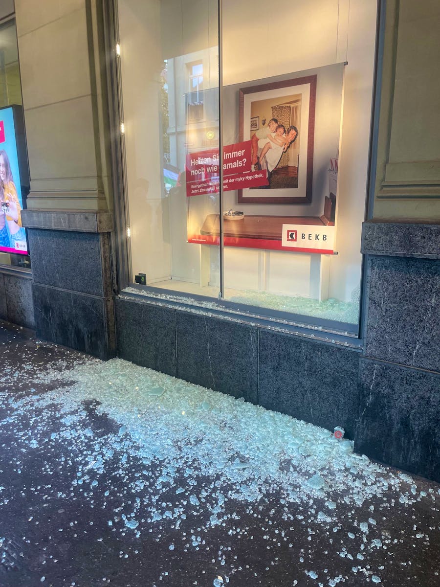 Zahlreiche Fensterscheiben, Eingänge und Bildschirme von Bankomaten wurden eingeschlagen und Fassaden besprayt oder mit Farbe und Schriftzügen verschmiert. Auch neun Fahrzeuge der Kantonspolizei Bern wurden massiv beschädigt oder besprayt. Es ist insgesamt von einem Sachschaden in Millionenhöhe auszugehen. Ob bereits Täter eindeutig identifiziert werden konnten, ist derzeit noch nicht bekannt.