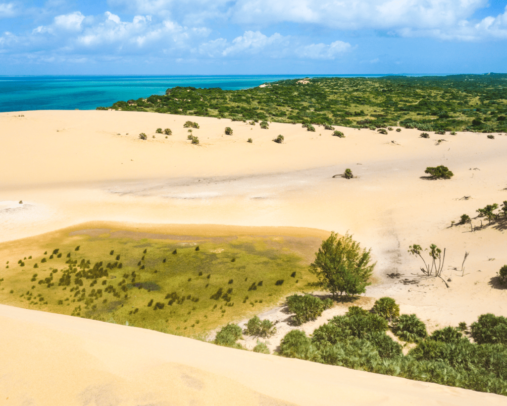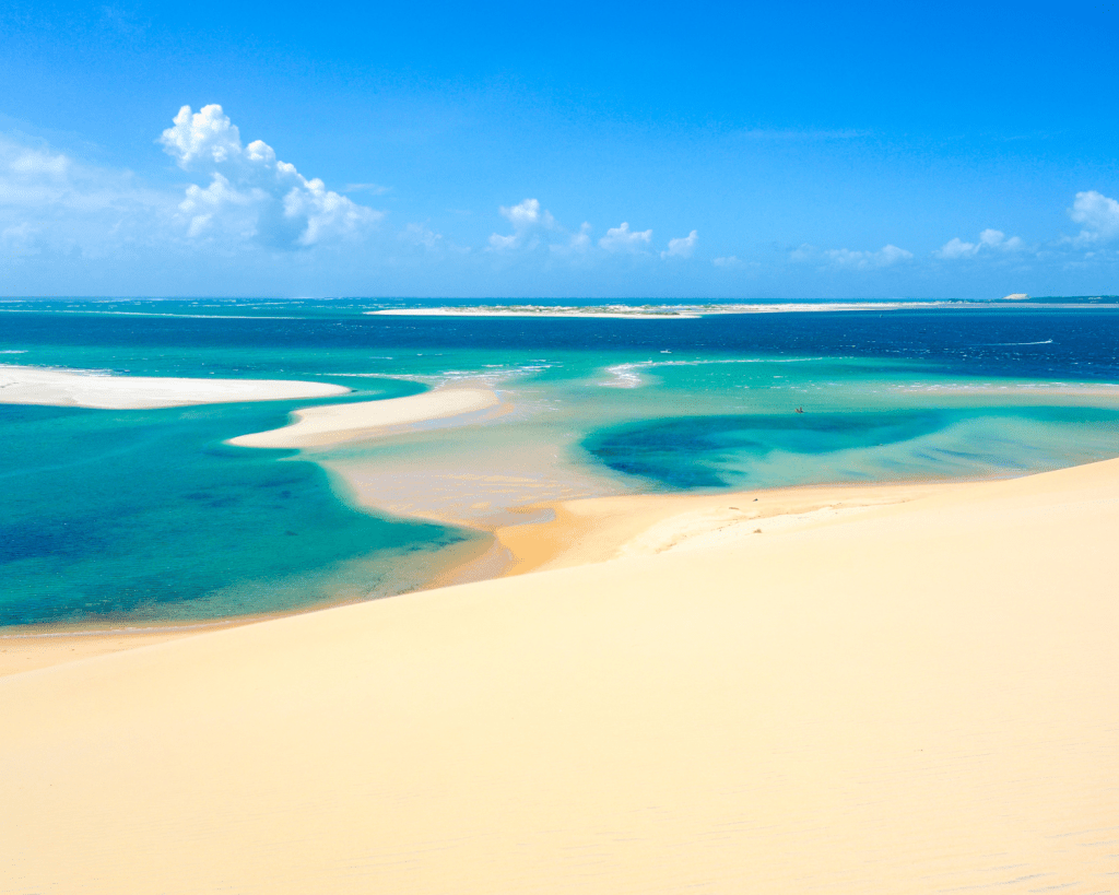 Bekannt ist der Bazaruto-Archipel vor Vilankulo: ein Nationalpark mit Dünenlandschaften, Delfinen, Meeresschildkröten und sogar Dugongs. Der Quirimbas-Archipel im Norden beeindruckt mit über 30 kleinen Inseln, von denen viele unbewohnt sind – ideal für authentisches Inselhopping.