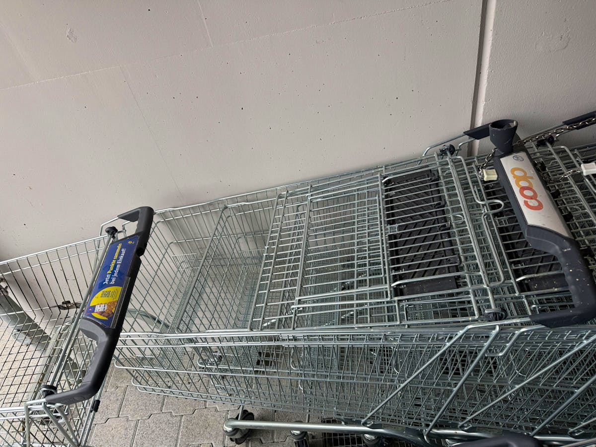 Die Wohnsiedlung liegt rund 500 Meter vom Telli-Shoppingcenter entfernt, wo sich auch der Coop befindet – von dort stammen die herumstehenden Wägeli. Früher durften Kundinnen und Kunden die Wagen mit nach Hause nehmen, Coop holte sie später wieder ab. Seit dem Umbau 2023 ist das nicht mehr erlaubt: Die neuen Einkaufswagen sind mit einem Magneten am Rad ausgestattet und dürfen das Areal nicht mehr verlassen.
