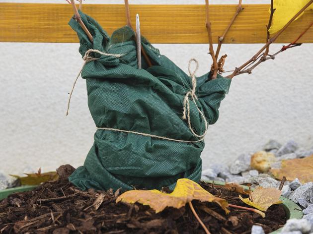 Junge Obstbäume und frostempfindliche Sträucher erhalten einen Schutzmantel aus Vlies oder Jutesäcken. Rosen profitieren von einer schützenden Mulchschicht aus Laub oder Stroh rund um den Wurzelbereich. Gleichzeitig können noch Bäume, Sträucher und Hecken gepflanzt werden, solange der Boden nicht gefroren ist.