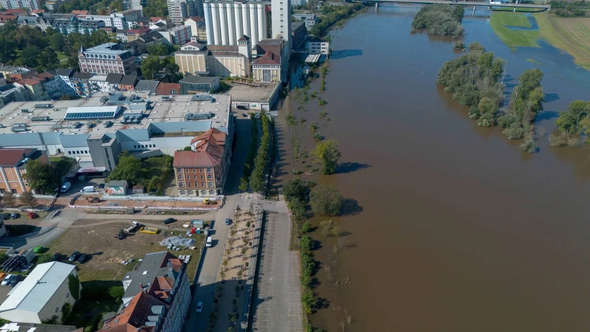 Der Wasserstand der Elbe in Riesa am 23.10.2025