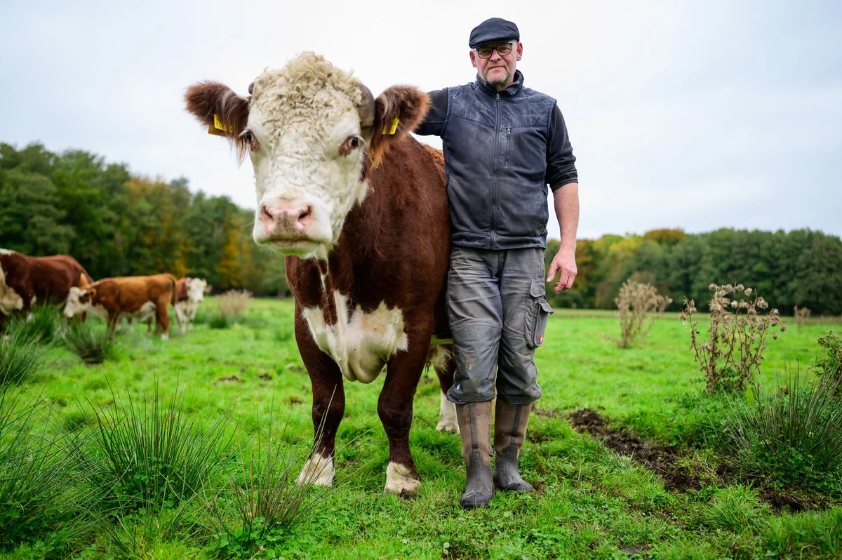 «Simba komm mal her», lockt Alexander Schmidt den siebenjährigen Ochsen auf der Weide außerhalb von Bienenbüttel. Das zottelige Rind löst sich aus der 40-köpfigen ...