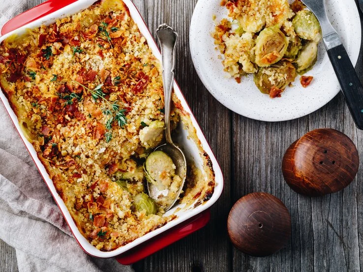 Rosenkohlauflauf mit Speck & Semmelbrösel – musst du probieren!