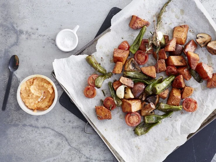 Saisonal schlemmen: Sommer-Gemüse vom Blech mit leckerem Dip
