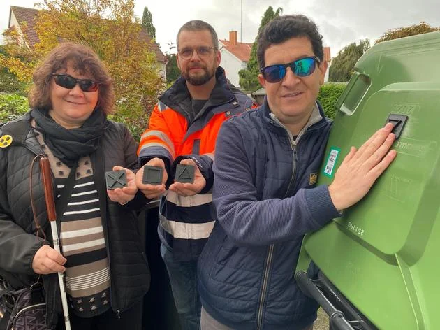 3D-Sticker helfen Blinden in Soest bei der Mülltrennung