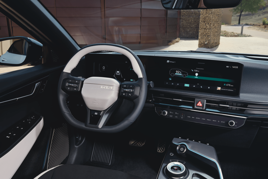 Auch der Innenraum setzt Maßstäbe, denn hier wird Komfort großgeschrieben: Sitze mit hochwertiger Lederoptik, Sitzheizung vorn und hinten sowie eine elektrisch einstellbare Lendenwirbelstütze sorgen dafür, dass du und andere Fahrgäste es bequem haben. Ein integriertes Digitaldisplay mit 31,2 cm Bildschirmdiagonale (12,3 Zoll), gewölbt und die Kia-Kartennavigation mit Apple CarPlayTM und Android AutoTM sorgen zudem für nahtlose Konnektivität.