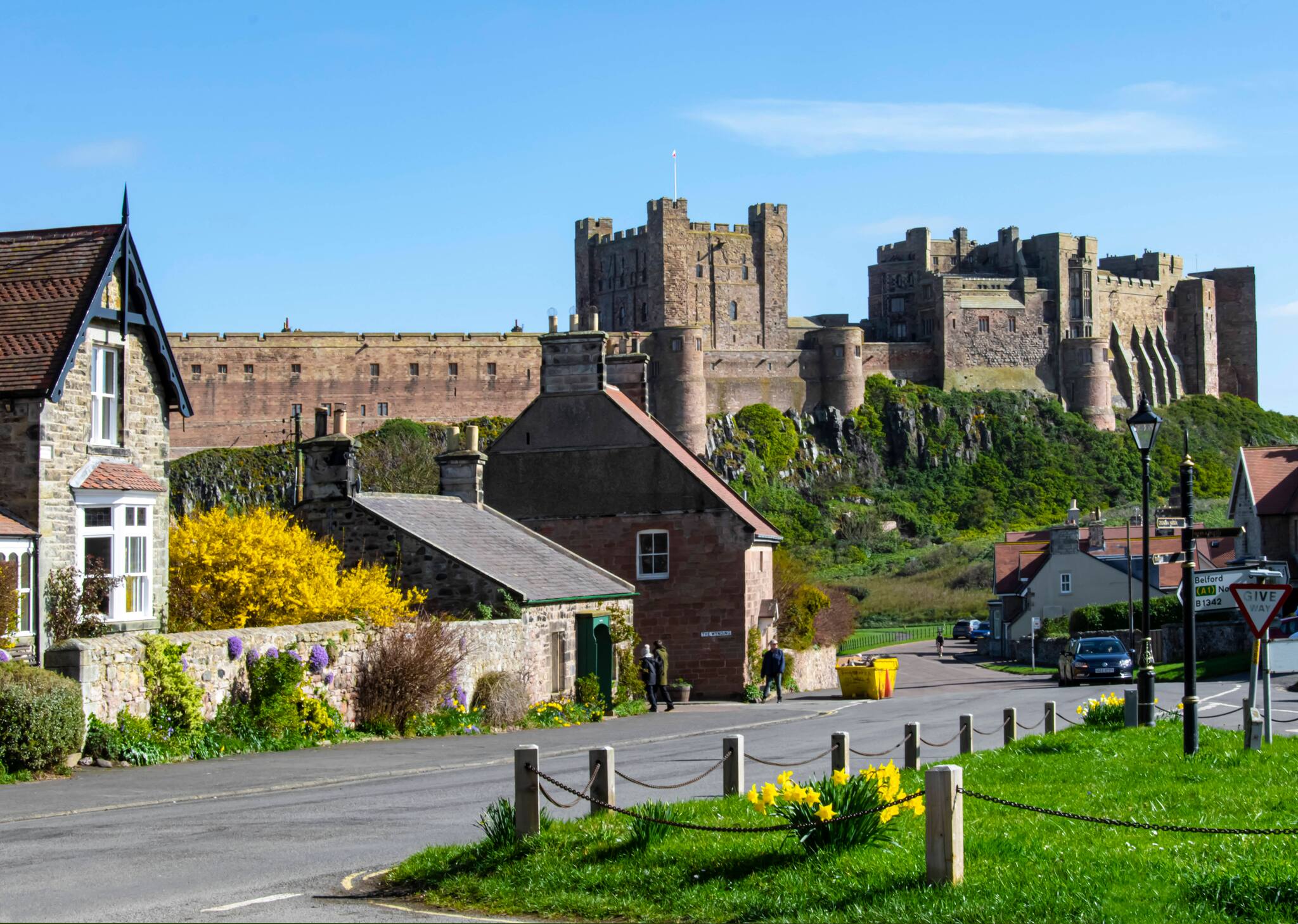 Überragt wird der Ort von der mächtigen Silhouette des Bamburgh Castle, einer der imposantesten Burgen Englands. Bereits im sechsten Jahrhundert existierte an dieser Stelle eine Festung der Könige von Northumbria. Die heutige Burg stammt weitgehend aus dem elften Jahrhundert, wurde durch den Bürgerkrieg jedoch stark beschädigt. Größere Restaurierungen im 19. Jahrhundert ließen die Anlage schließlich in altem Glanz erstrahlen.