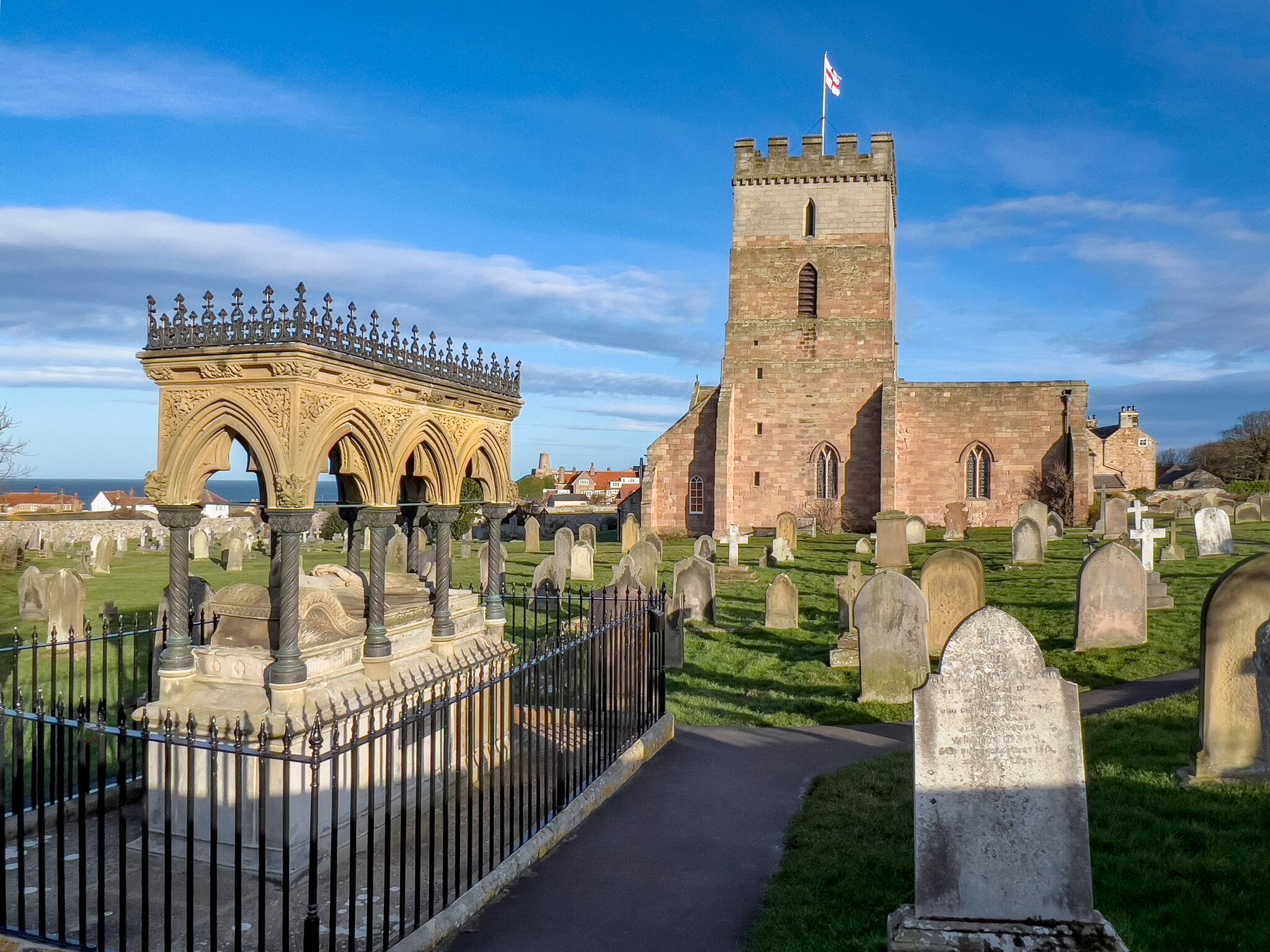 Nicht weit von der Burg liegt die St. Aidan’s Church mit der Grabstätte von Grace Darling. Die Tochter des örtlichen Leuchtturmwärters erlangte im Jahr 1838 nationale Berühmtheit, als sie mit ihrem Vater mehrere Schiffbrüchige des Raddampfers „Forfarshire“ rettete.