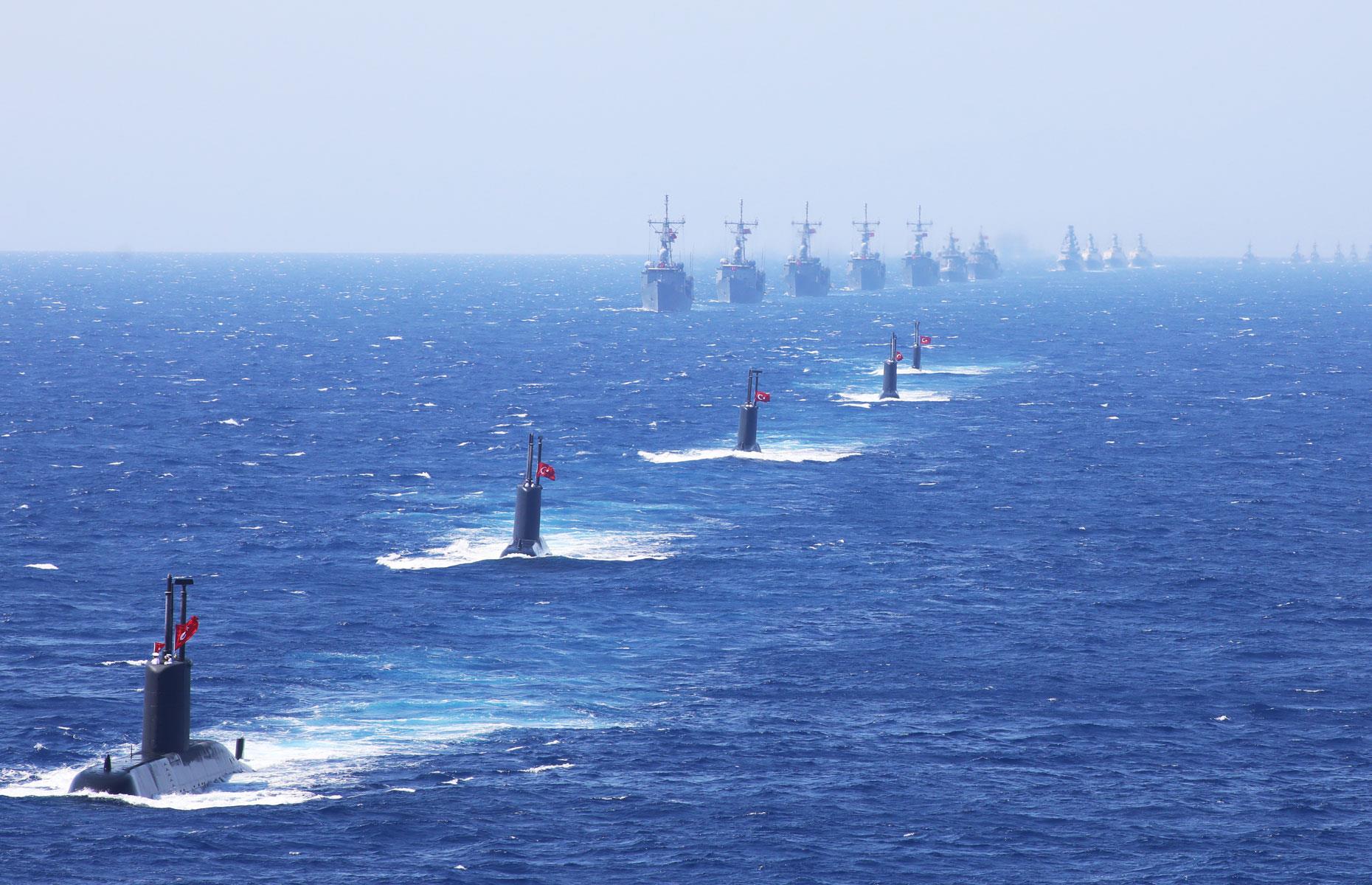 Dieses Bild zeigt ein großes Marinemanöver der türkischen Streitkräfte aus dem Jahr 2024 vor der Küste von Marmaris.