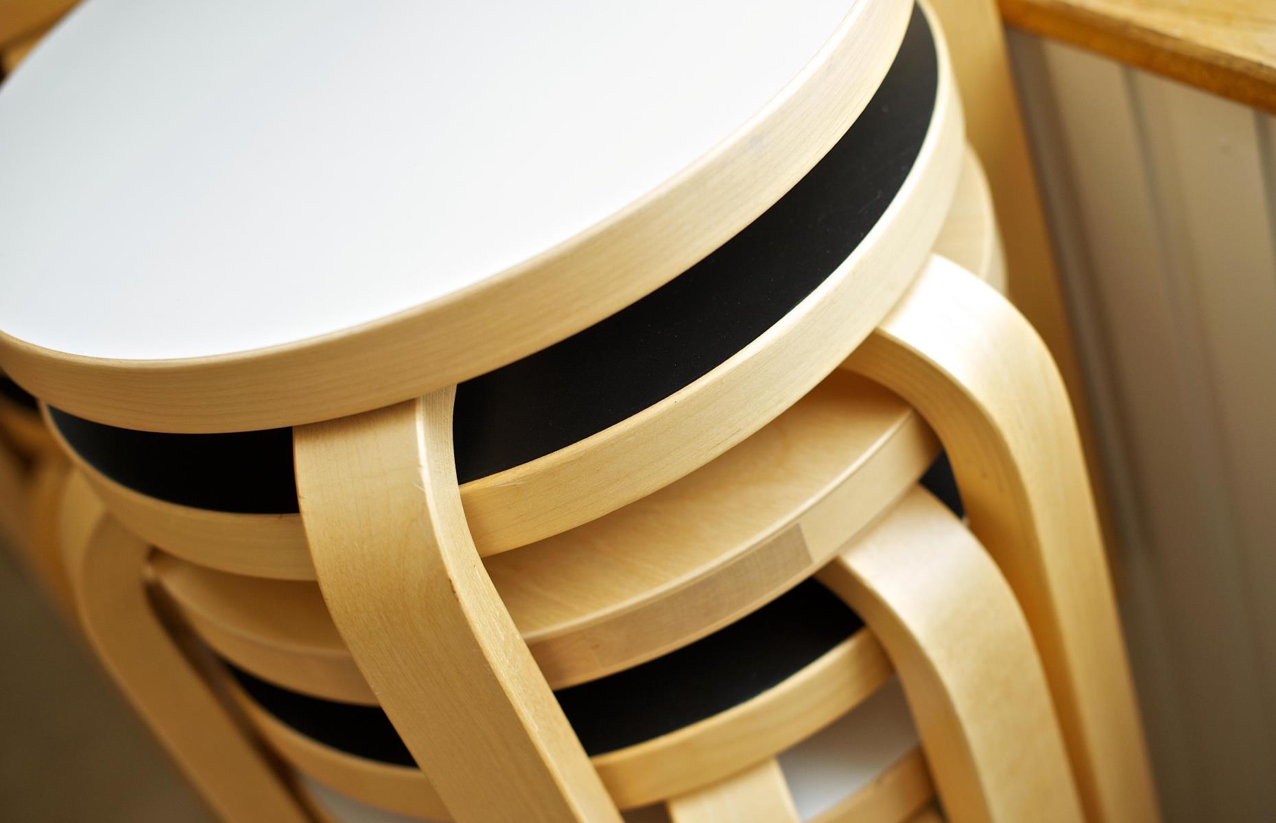 Der Hocker 60 – oder „Stool 60“ in der internationalen Designszene – gilt als der wichtigste Entwurf des finnischen Architekten und Designers Alvar Aalto. Revolutionär zum Zeitpunkt der Erfindung im Jahr 1933 war die L-Beine-Konstruktion aus Schichtholz.