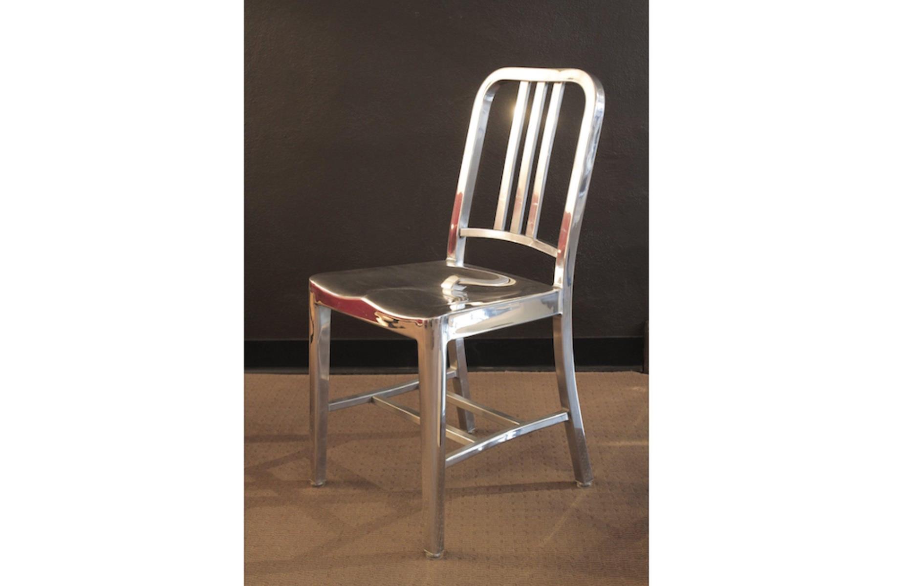 Das Stuhlmodell Emeco 1006 der gleichnamigen amerikanischen Möbelfirma wurde ursprünglich während des Zweiten Weltkriegs für die US-Marine gebaut, was ihm seinen Namen „Navy Chair“ einbrachte. Der Stuhl wird in einem aufwändigen 77-stufigen Verfahren aus recyceltem Aluminium hergestellt und mit lebenslanger Garantie geliefert.
