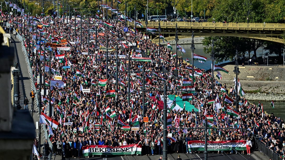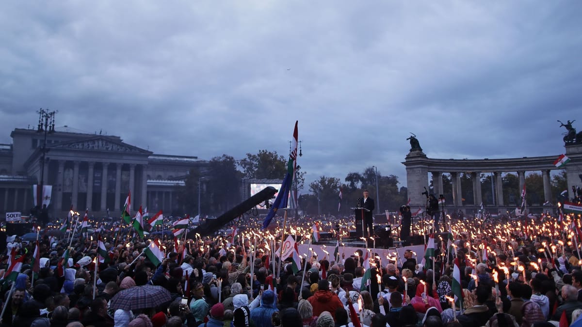 Doch der gestrige Donnerstag war nicht allein deshalb besonders, weil in Ungarn der Vergangenheit gedacht wurde. Vielmehr ging es diesmal nämlich um die Zukunft: In der Hauptstadt Budapest kam es zu zwei bedeutenden Kundgebungen. Am Morgen trafen sich die Anhänger des autoritären Ministerpräsidenten Viktor Orbán zu einem “Friedensmarsch”. Am Nachmittag gab es allerdings auch einen “Nationalen Marsch”, angeführt von dem Oppositionspolitiker Péter Magyar.