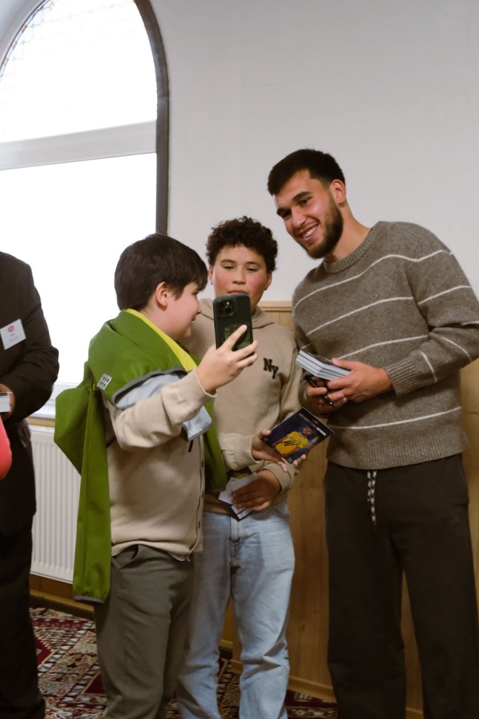 Der 23-jährige Fußball-Profi motivierte die jungen Besucher mit ermutigenden Worten und machte deutlich, wie wichtig es für ihn ist, dort zu spielen, wo er seine Religion am besten ausleben kann, ohne sich verstellen zu müssen. Mit dieser Einstellung will er auch die Jugendlichen inspirieren. „Es ist schön, den Jüngeren mitgeben zu können, was man selbst vorher gelernt hat – im Thema Religion ist das umso schöner, wenn man in dem Bereich auch ein Vorbild sein kann. Es war schon immer ein Traum. Deshalb ist es schön, mit ihnen das Gespräch zu suchen und paar Tipps zu geben“, erzählt er Sabo.