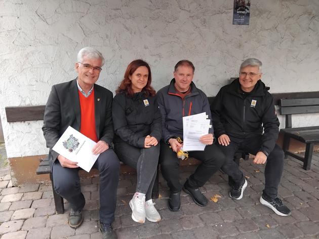 Wie berichtet, hat die Steuerungsgruppe, der Bürger und Gemeindevertreter angehören, die Idee einer ums Eck gehenden Bank mit Tisch unter dem Vordach der Sanitäranlage entworfen, von der sich Landrat Warnecke begeistert zeigte: „Das passt gut, wo doch hier gleich ein Bäcker und eine Fleischerei sind.“