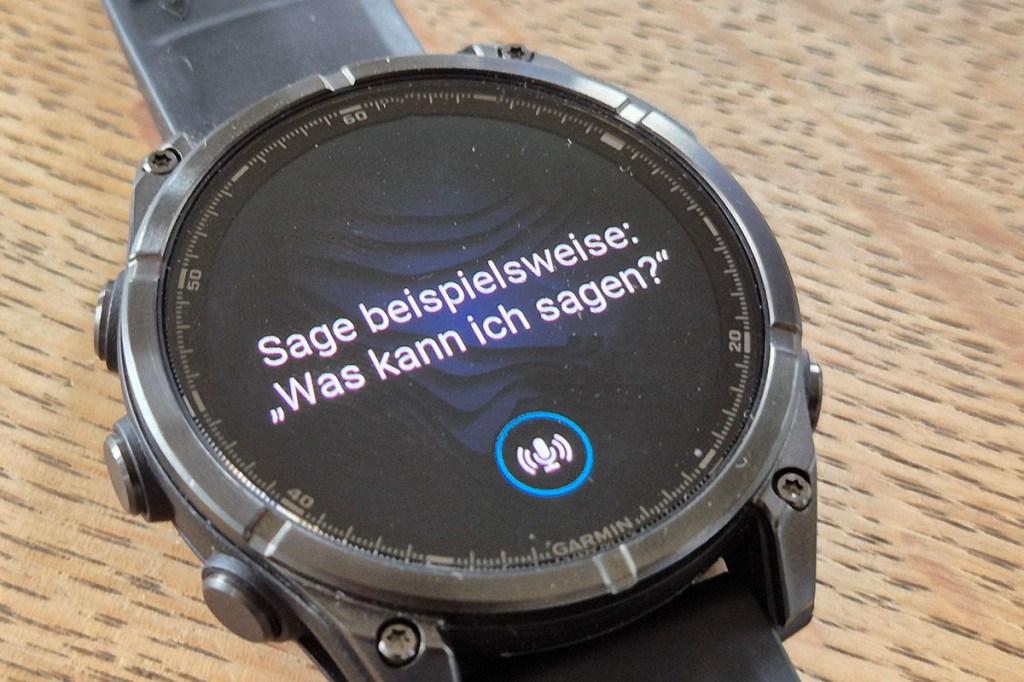 Der Zugriff auf Siri oder Google Assistant vom Handgelenk funktioniert zwar ebenfalls, aber nur wenn das gekoppelte Smartphone in der Nähe ist. Einfach länger die Taste (oben rechts) drücken, auf eine kleine Mikrofonanimation warten und die Frage stellen. Die Fenix 8 kann auch Sprachnotizen aufzeichnen, was sehr praktisch ist, um Gedanken festzuhalten, die einem beim Laufen oder Radfahren durch den Kopf gehen.