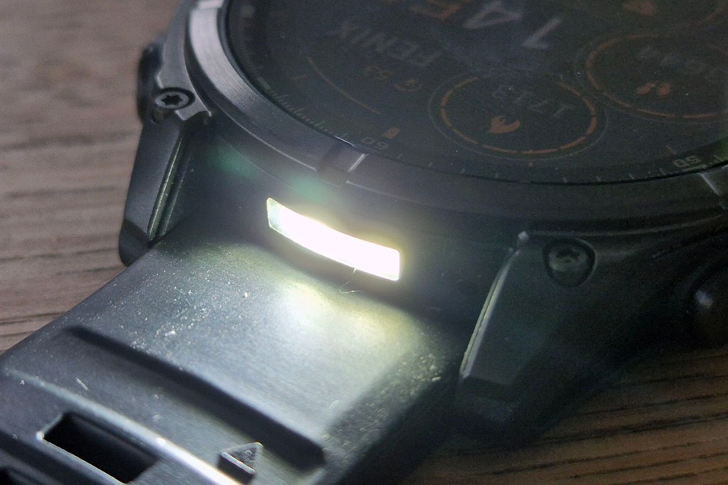 Gut dagegen: Es gibt mehrere neue Zifferblätter für die Fenix 8, bei denen sich die Farben und Daten dem eigenen Vorlieben entsprechend anpassen lassen. Weitere Zifferblätter lassen sich über den Connect-IQ-App-Store hinzufügen. Und: Die beliebte Taschenlampe der Epix Pro und Fenix 7 Pro auf der Gehäuseoberseite ist auch bei der Fenix 8 wieder mit von der Partie. Diese „echte“ LED-Taschenlampe ist in vielen Situationen sehr nützlich, zum Beispiel beim Stöbern im Keller oder beim nächtlichen Gang zur Toilette.