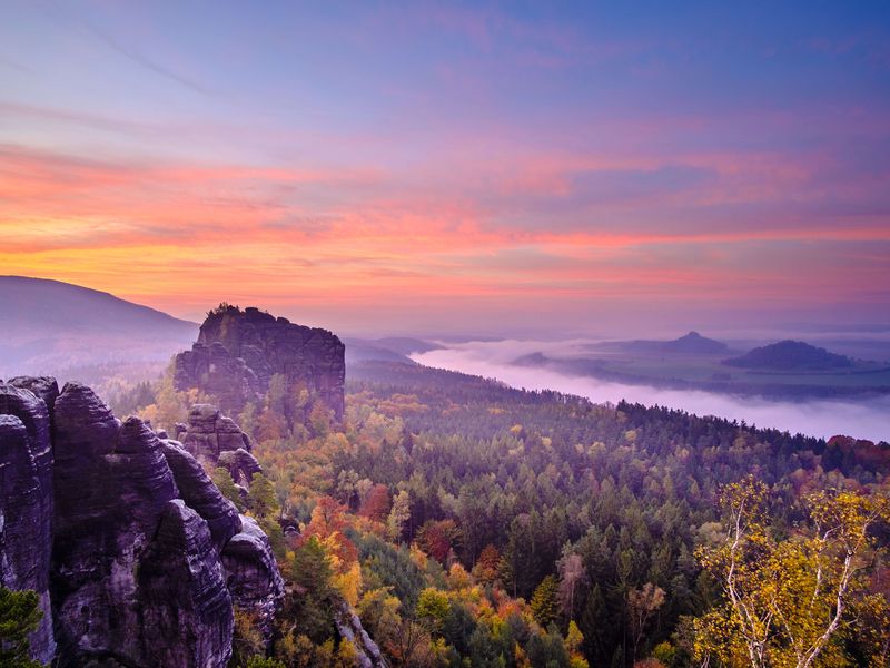 Immer einen Besuch wert, egal zu welcher Jahreszeit, ist die Sächsische Schweiz. Aber im Herbst, wenn die ganze Gegend in Gold-, Gelb-, Braun- und Rottöne getaucht werden, sieht es dort einfach fantastisch aus – besonders, wenn die Landschaft des Elbsandsteingebirges dann auch noch in Nebel getaucht ist. Insbesondere die Bastei ist dann wirklich toll anzuschauen!