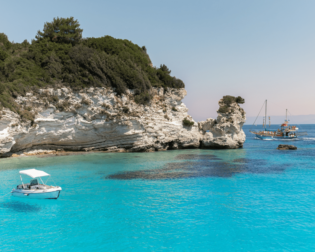 Wer noch mehr Abgeschiedenheit sucht, findet sie auf Antipaxos, der winzigen Nachbarinsel. Sie ist in nur 15 Minuten per Boot erreichbar und berühmt für ihre weißen Strände und das glasklare Wasser.