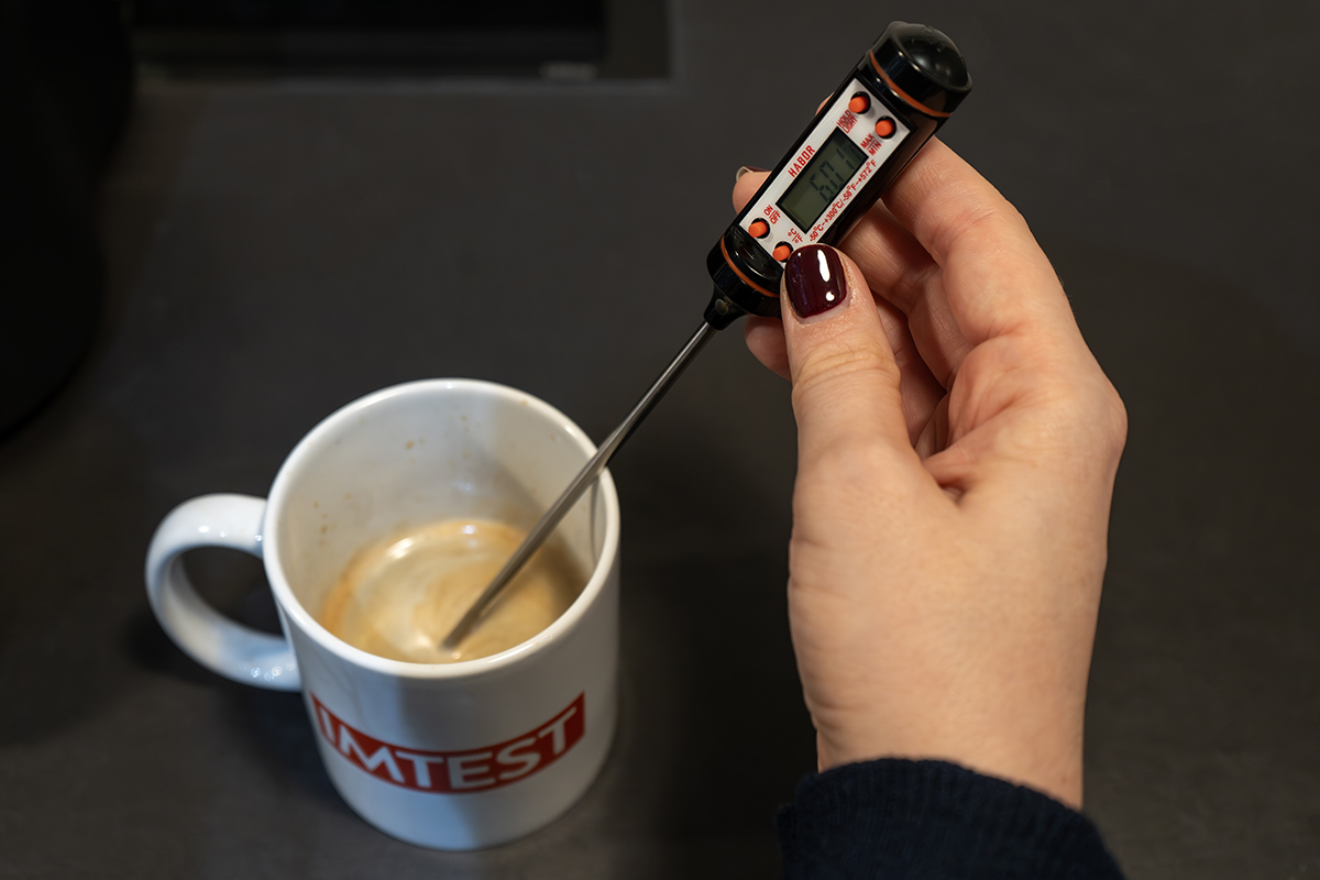 Bereits 7 Sekunden nach dem Einschalten war sie im Test startklar, nach weiteren 20 Sekunden floss der fertige Espresso in die Tasse. Zwar war der Kaffee mit 72 Grad Celsius (°C) etwas zu heiß, geschmacklich überzeugte er aber dennoch mit ausgewogenem Aroma und stabiler Crema.