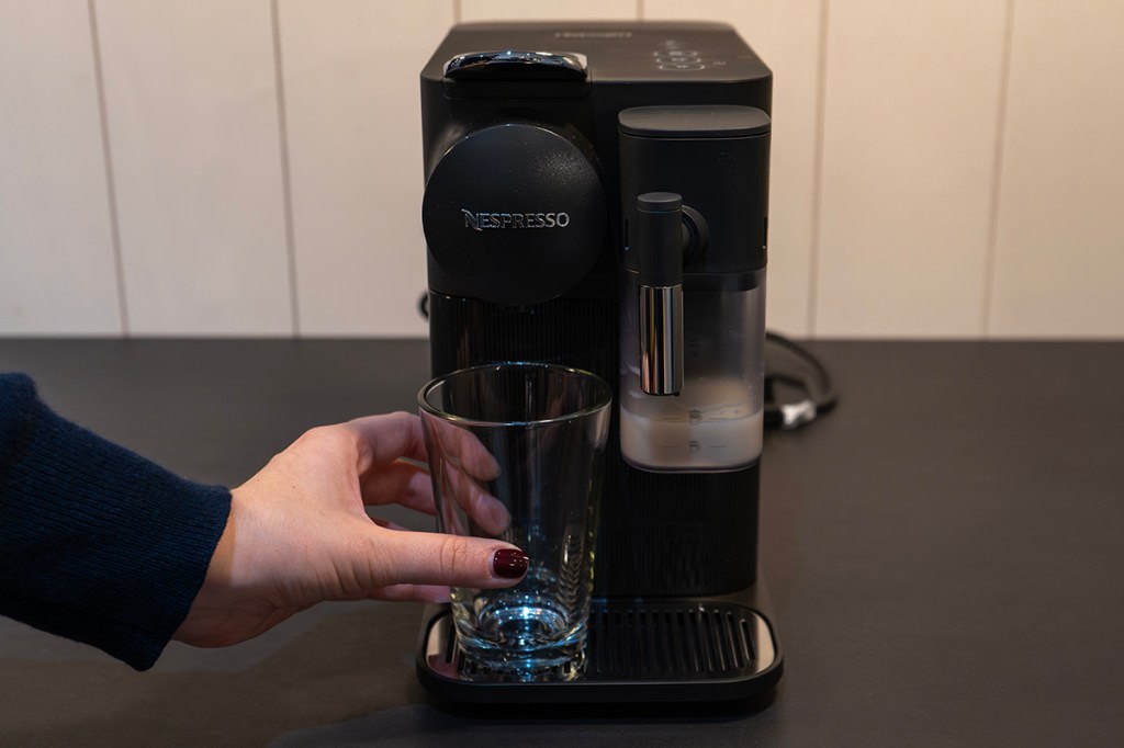 Praktisch an der De’Longhi-Kapselmaschine: Der Milchbehälter ermöglicht auf Knopfdruck Cappuccino und Latte-Getränke. Ein Pluspunkt gegenüber klassischen Kapselmaschinen.