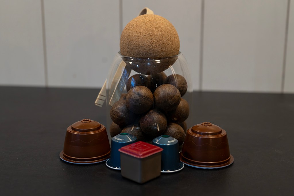 Die CoffeeB-Kaffeekugeln besitzen eine biologisch abbaubare Schutzschicht, die sie in Form hält. Anschließend soll der Kaffee als Dünger verwendet oder im Biomüll entsorgt werden können.