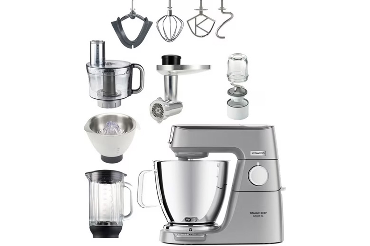 Die Maschine von Kenwood wird mit zwei Rührschüsseln (sieben und fünf Liter) und wichtigen Standard-Werkzeugen geliefert: