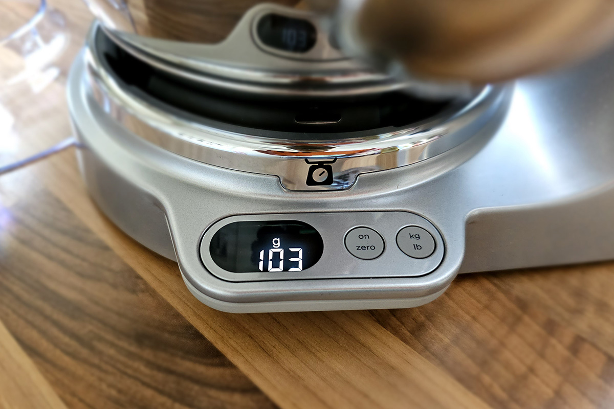 Praktisch sind dagegen die integrierte Waage, der mitgelieferte Spritzschutz und die Abschaltautomatik beim Anheben des Rührarms. So bleibt die Küche auch beim Sahneaufschlagen sauber. Zudem ist das Modell hochwertig verarbeitet, standfest und wird mit viel Zubehör geliefert. Die Handhabung des Rührarms ist ebenfalls noch einfach, auch wenn der Entsperr-Schalter ungünstig positioniert ist und das Aufklappen etwas Kraft erfordert. Negativ hervorzuheben ist insbesondere die hohe Lautstärke.