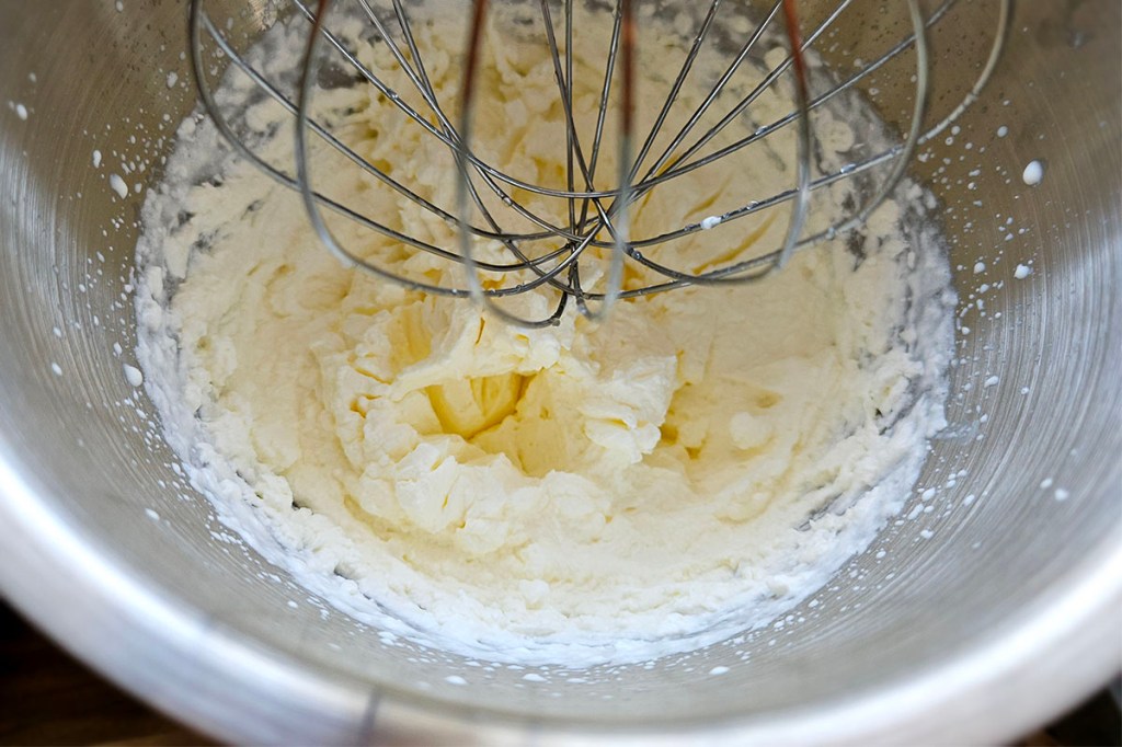 Nach dem Aufschlagen der Sahne hat Sabodie zweite Rührschüssel verwendet, um eine Quarkmischung anzurühren und dieSahne unterzuheben.