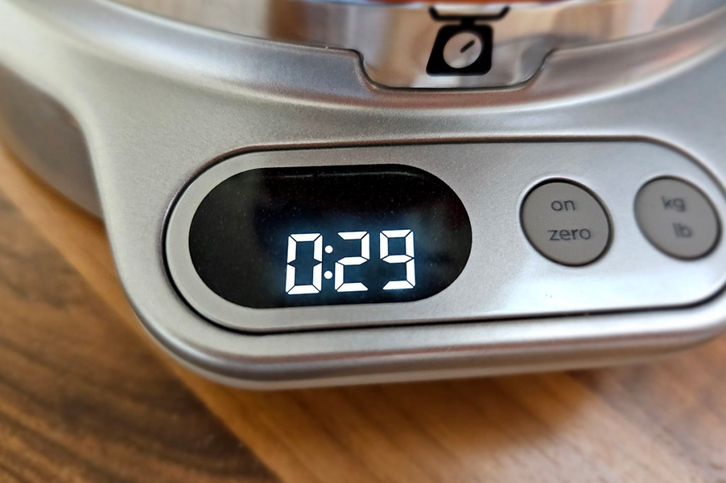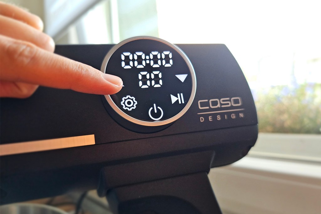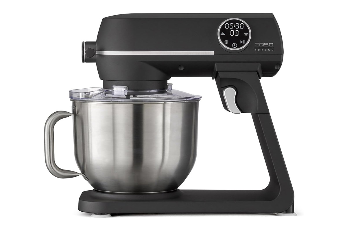 Statt eines Drehreglers verfügt die Caso über ein modernes Touch-Display, über das sich zehn Geschwindigkeitsstufen und ein Timer einstellen lassen – ideal, um Rührzeiten exakt zu steuern. Zum Entsperren zieht man an einem Hebel, wobei der Rührarm schwungvoll hochspringt und besser festgehalten werden sollte. Im Praxistest überzeugte die Küchenmaschine mit schneller Teigverarbeitung und fest geschlagener Sahne in nur drei Minuten. Mit 79 Dezibel arbeitet sie hörbar, bleibt mit 107 Watt Verbrauch aber sparsam.