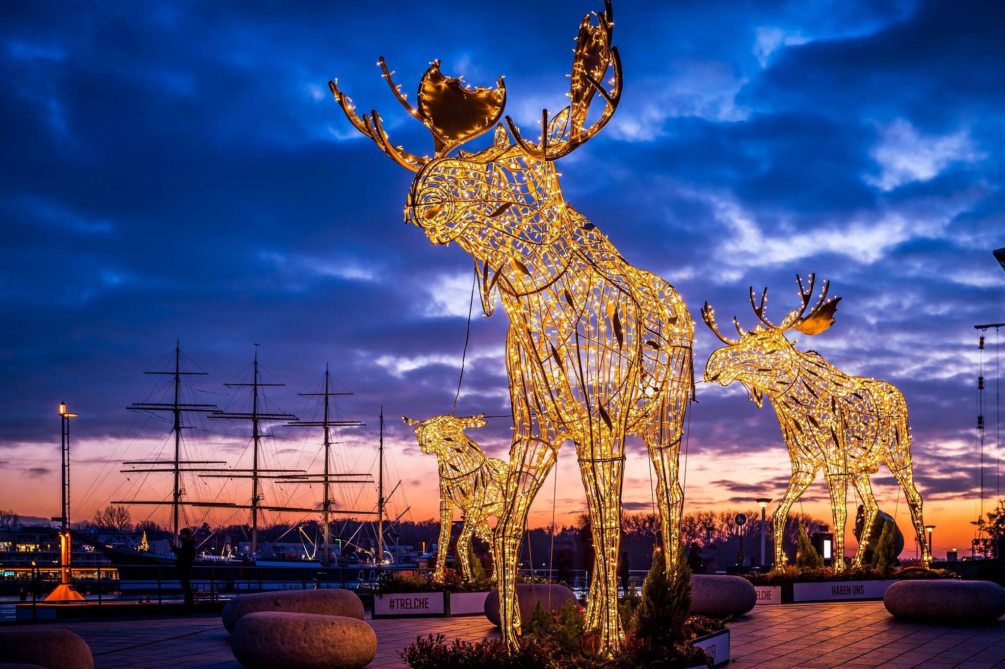 Sie freuen sich stets über viel Besuch und Streicheleinheiten! Pünktlich zur Winterzeit bringen Linus, Kalli und Lumi das Licht aus dem hohen Norden wieder nach Travemünde. Geschmückt mit beinahe 10.000 LED-Lämpchen schlägt die beliebte Elchfamilie im XXL-Format ihr Winterlager zum ersten Mal im Fischereihafen auf und lässt die Promenade im neu gestalteten Hafenquartier erstrahlen. Ab Freitag, 24. Oktober, bis Mitte Februar ist das tierische Trio wieder cooler Selfiepoint, Treffpunkt für Verliebte und Ausflugsziel für die ganze Familie.