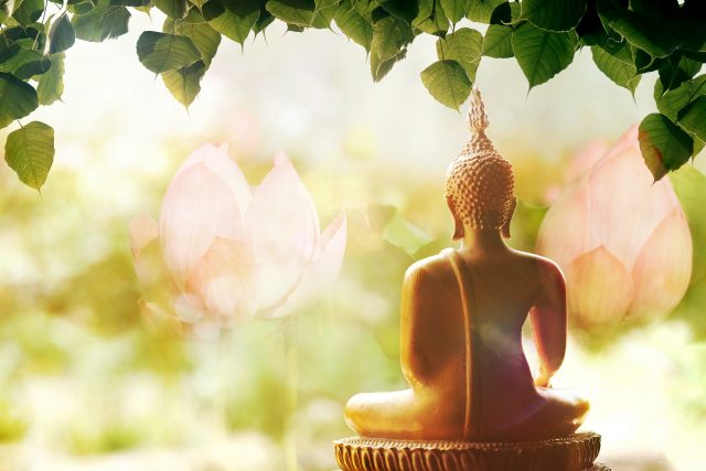 Auch der Buddhismus respektiert die Lotusblüte, die für ihn die Reinheit von Körper, Geist und Sprache darstellt, und der Überlieferung nach wuchs die Lotusblüte dort, wo Buddha ging.