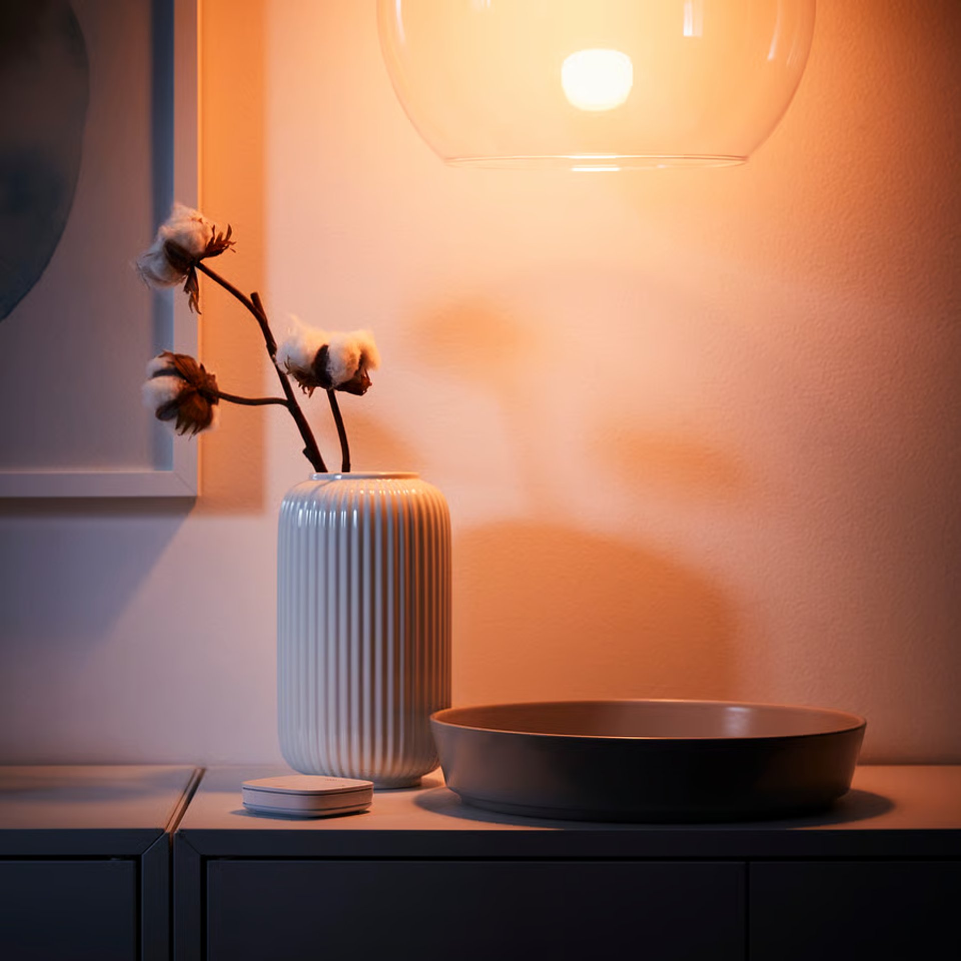 Hygge beginnt mit dem richtigen Licht. Weiches, warmes Licht schafft sofort Wohlfühlstimmung. Tausche grelle Deckenlampen gegen dimmbare Tisch- oder Stehlampen (z. B. mit Philips Hue oder IKEA TRÅDFRI).