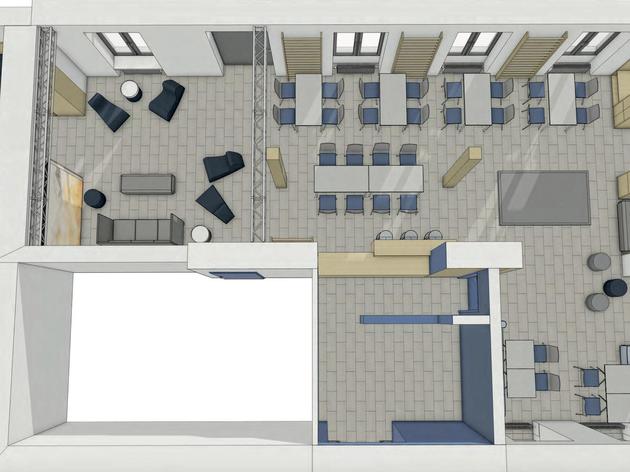 Auch wenn bei dem einen oder anderen ein wenig Wehmut aufkommt, seien die Sitzbänke in der Praxis längst unpraktisch geworden. Künftig sollen stapelbare Stühle mit und ohne Armlehren sowie roll- und klappbare Tische einziehen, die sich bei Bedarf schnell ins Stuhllager räumen lassen. Eine gemütliche Couchecke soll zusätzlich für Aufenthaltsqualität sorgen. „Der Raum wird künftig flexibler und multifunktional nutzbar sein“, betont Buthe.