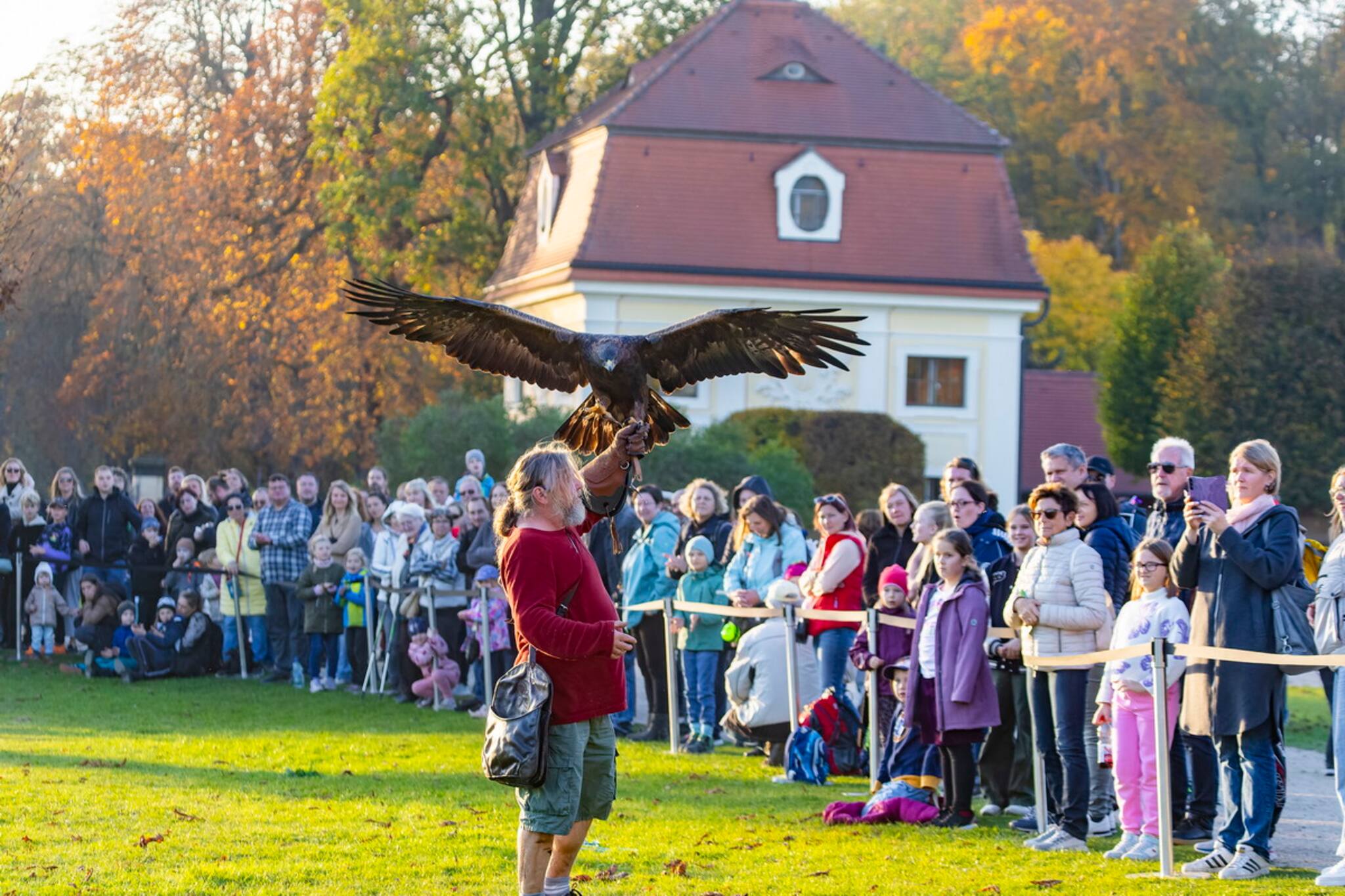 Im Park auf der Nordseite des Schlosses Moritzburg präsentiert Hans-Peter Schaaf vom Jagdfalkenhof an beiden Tagen jeweils 11.15, 14 und 16 Uhr seine Greifvogelshow. Weil das Angebot in den vergangenen Jahren sehr beliebt war, finde die Show jetzt dreimal täglich statt, so Gundula Bleul, die Geschäftsführerin der Kulturlandschaft Moritzburg GmbH.