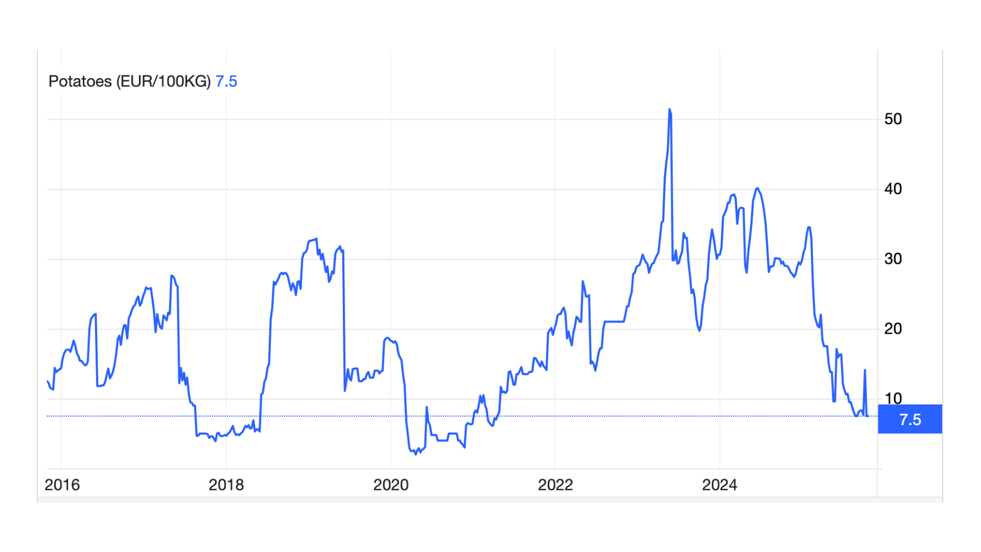 Zwar profitieren die meisten Verbraucher von niedrigeren Preisen, doch Landwirte müssen entweder sinkende Einnahmen hinnehmen oder sind gezwungen, von Grundnahrungsmitteln wie Kartoffeln auf profitablere, aber arbeitsintensivere Anbauprodukte umzusteigen. Viele Betriebe in Europa setzen stattdessen auf lokale Zugangs- oder „Selbstpflück“-Modelle, um gestiegene Arbeitskosten zu senken. Diese sind in der Landwirtschaft jüngst vor allem durch eine strengere Einwanderungspolitik und den dementsprechenden Mangel an Saisonarbeitskräften entstanden.