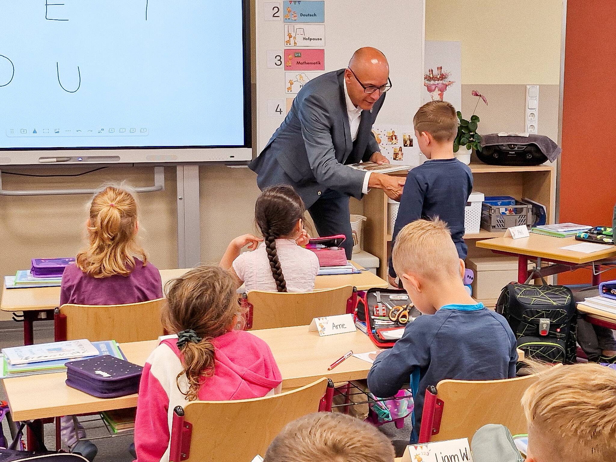 Die beiden ersten Klassen werden von Josefine Bock (1a) und Lisa Rösler (1b) geleitet. Am 16. September besuchte Thiel die Evangelische Stephanus-Grundschule, um auch dort die Bücher zu übergeben.
