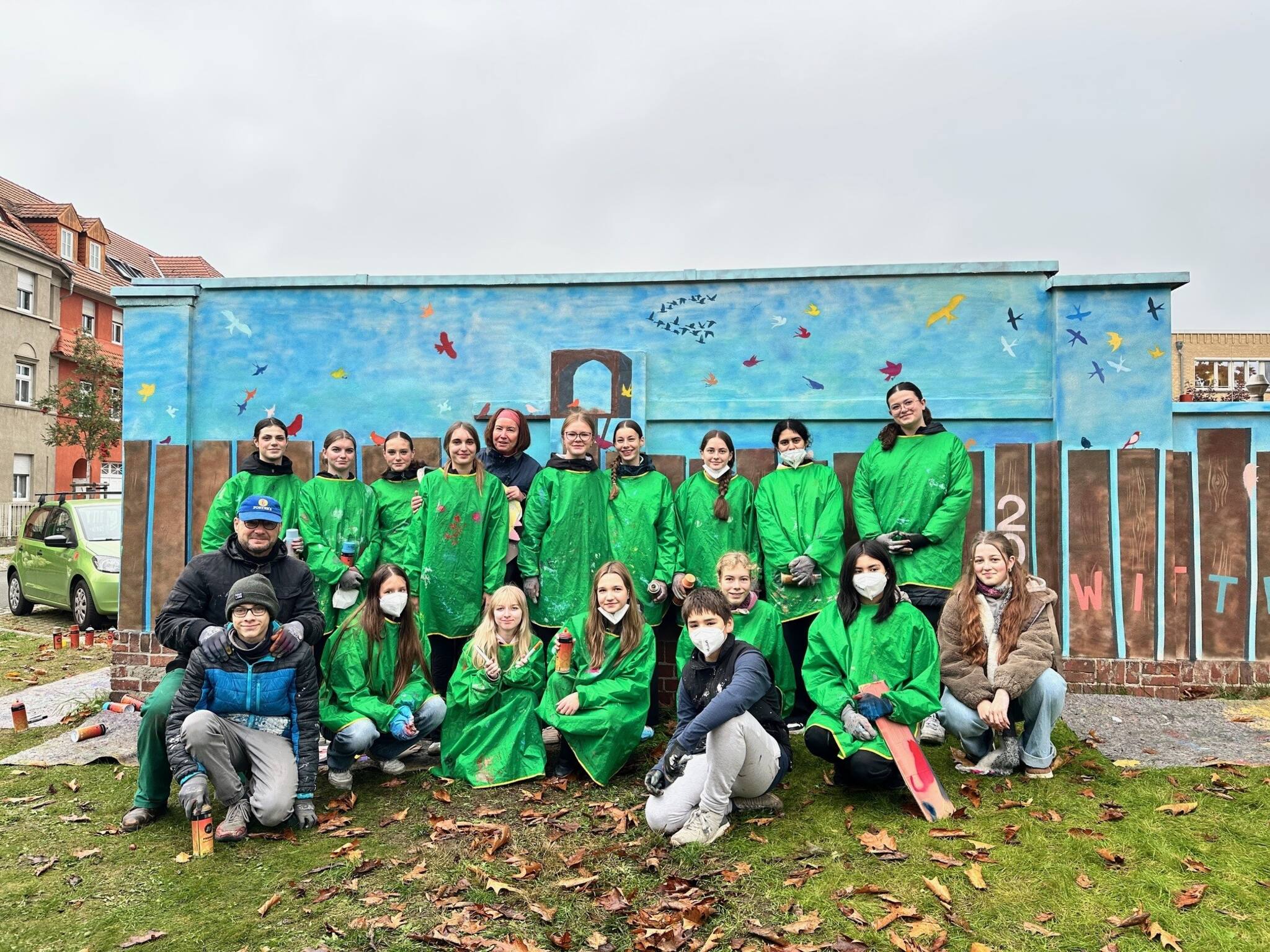 Schüler gestalten bunte LAGA-Mauer in Wittenberge