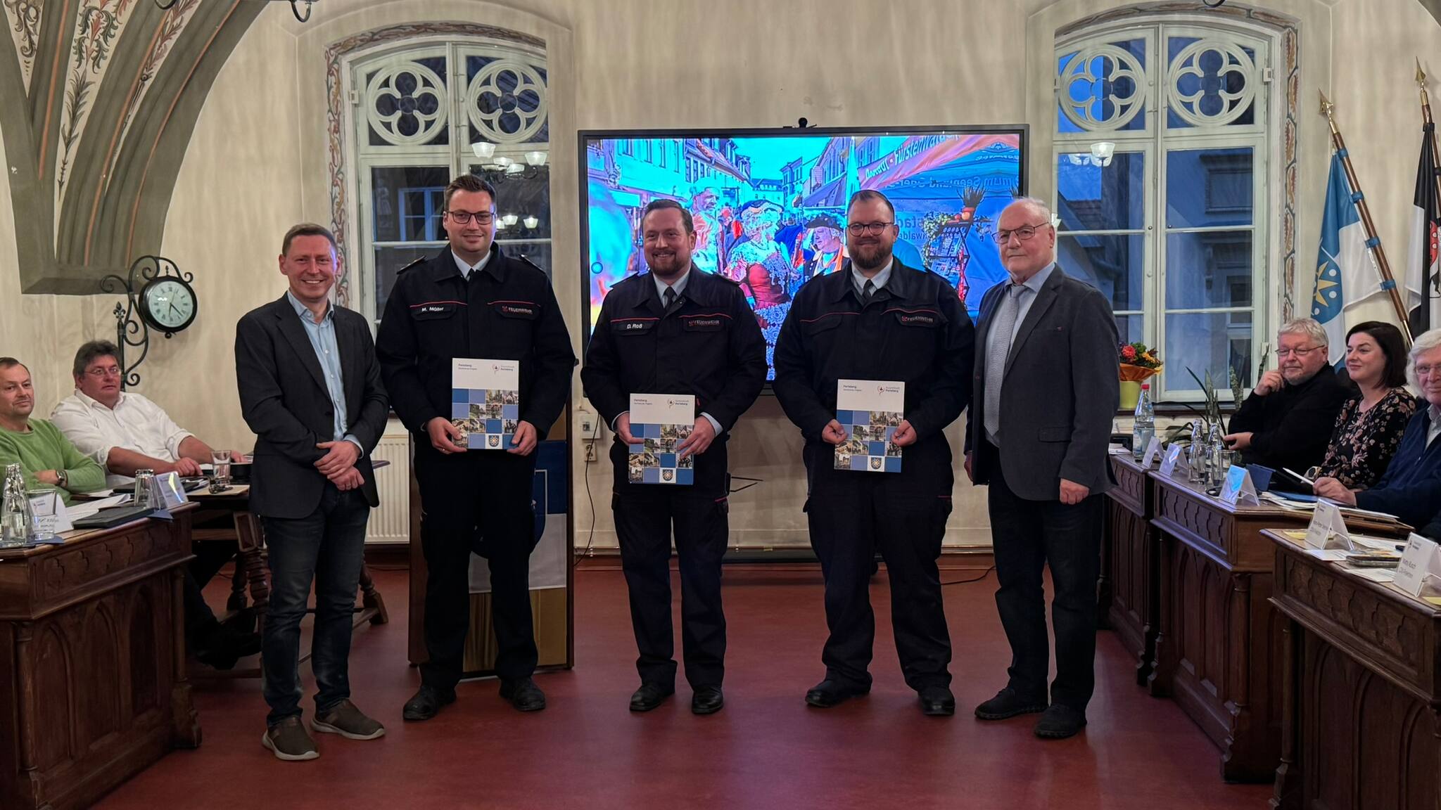 Maik Müller bleibt weitere sechs Jahre Stadtwehrführer. Auch David Roß wurde erneut als Stellvertreter berufen. Neu im Führungsteam ist Thomas Leppin, der nun als zweiter Stellvertreter unterstützt.