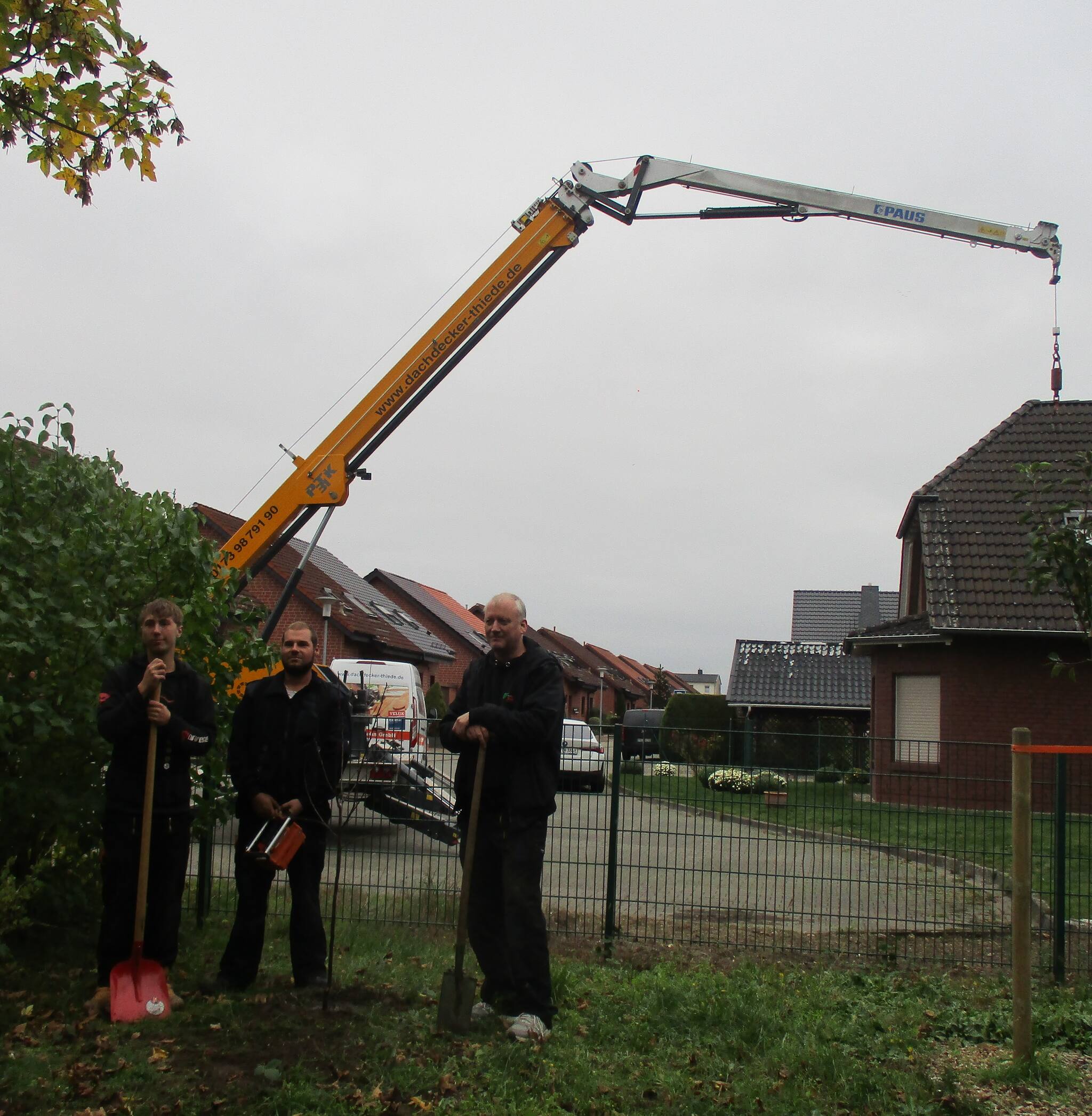 Mit Kran und Technik brachten die Dachdecker den Baum auf das Kita-Gelände – unter dem Jubel der Kinder, die gespannt zusahen. „Dank des gepflanzten Baumes können unsere Kinder später hier ihre eigenen Pflaumen ernten“, sagte die Kita-Leiterin.